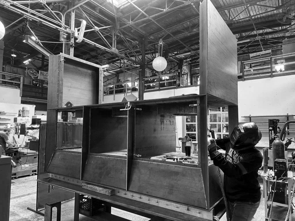 Large scale weldments fabricated and supplied by salmon studios. Made out of a combination of weathering steel square tube and plate.