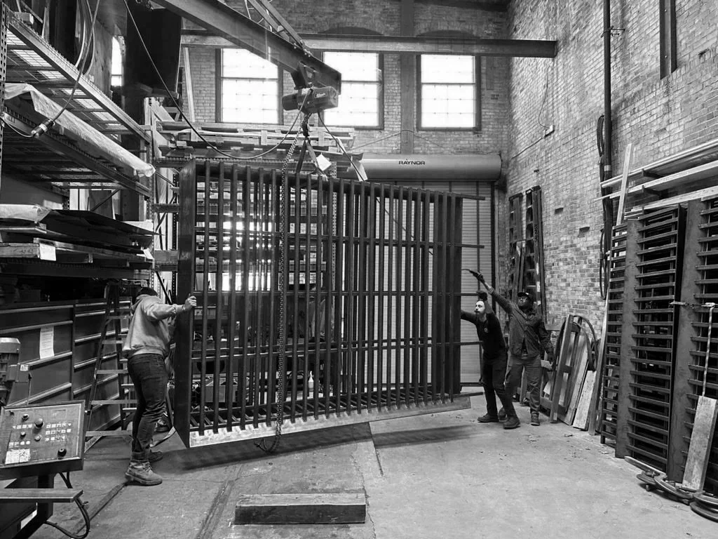 Salmon Studios was contracted to fabricated the entire exterior scope of Weathering Steel metalwork for this private Vermont residence. Everything from the Window surrounds and gutters to large scale weldments were engineered and fabricated in our western MA shop. Across the house large and small weathering steel details serve to accent this unique home.
